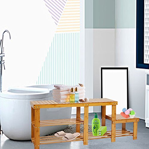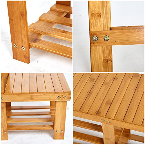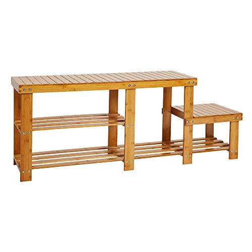 - Multifunctional shoe bench: made with 100% natural bamboo., eco-friendly and sturdy, one tier larger section for boots and heels,2 tier shelves for short shoes.