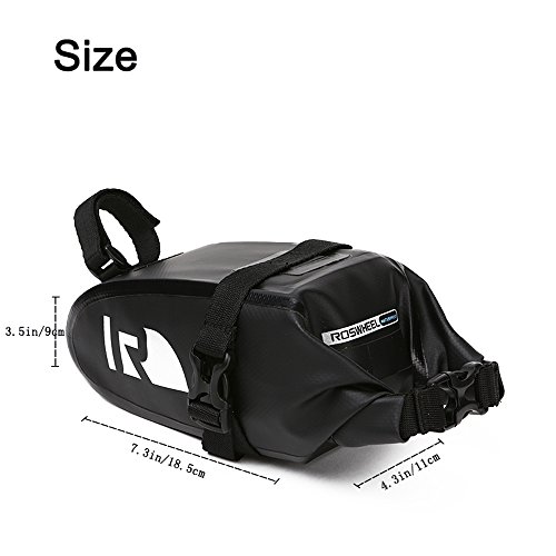 Features:The clip attaches to the underside of a bike seat and a Velcro strap secures the bag to a seat post.A taillight can be attached above the buckle on the taillight hanger.Tools, snacks, wallets, keys or phones can be kept dry when riders are caught out in storms.Material: PVC Waterproof Mesh Item size: Approx. 7.3"*4.3"*3.5"in /18.5 * 11 * 9cmItem weight: 0.4 lb/180gPackage including:1 * Bike Saddle BagFeature