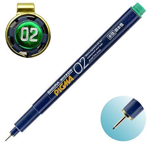 -. Feature : Sakura pigment ink pen, pigma micron 02 green / Model-ESDK02#29 / Water base pigment color pen from Japanese stationary Brand sakura cray-pas, pigma Series
