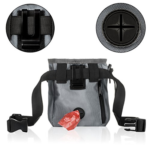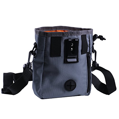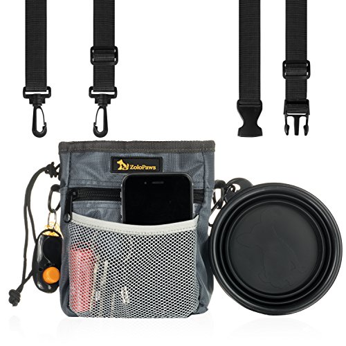 -. Title : Dog Treat Training Pouch with Built-in Poop Bag Dispenser, Pet Training Bag, Carry Pet Treats & Toys, Shoulder & Waist Strap + Bonus Dog Clicker + Collapsible Bowl & 1 Roll of Poop Bags