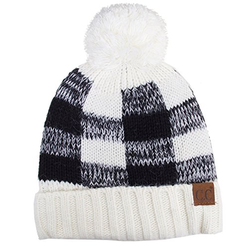 Product DescriptionScarvesMe CC Buffalo Check Pattern Knitted Beanie Hat with Pom Pom0