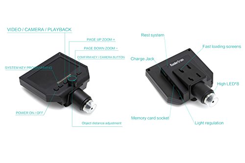 - 1-600X continuous magnification;8 LED Illumination with Adjustable Intensity Control,allowing you to set desired level of illumination, and a measuring scale; Images and videos obtained during your observations are saved to a microSD card,supporting 1-64GB