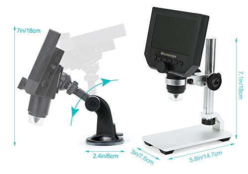 Koolertron 4.3" LCD Digital USB Microscope magnifier with Adjustable Stand 1-600X Continuous Magnification Zoom,8 LED Adjustable Light Source,Rechargeable Lithium Battery,Camera Video Recorder