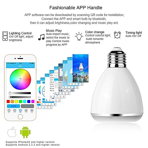 Bluetooth Speaker Bulb: The built-in bluetooth 4.0 speaker allows you to automatically pair your device for wireless transmission coverage. It can be compatible with Android 2.3.3 and later version, Iphone4S/5S/6/6Plus etc