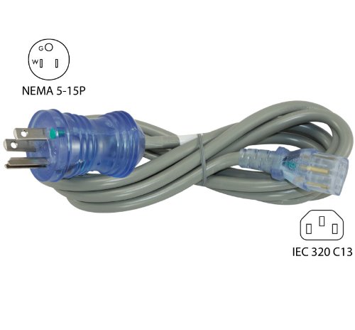 Conntek 25228 15-Amp 125-Volt Hospital Grade/Green Dot Cord 10-Foot SJT 14/3 105C NEMA 5-15P to IEC 320-C13