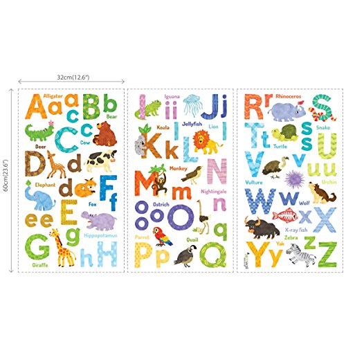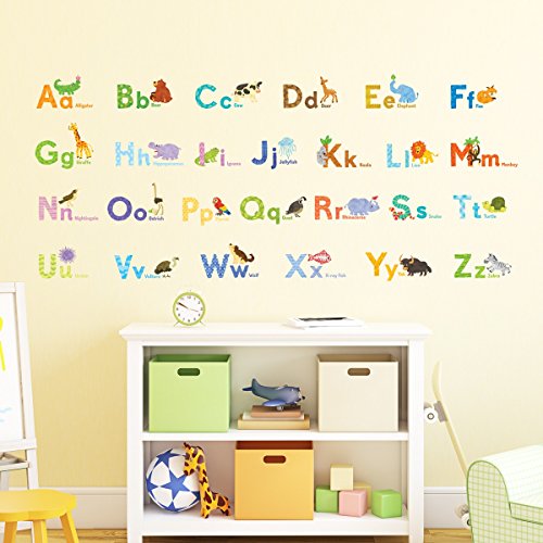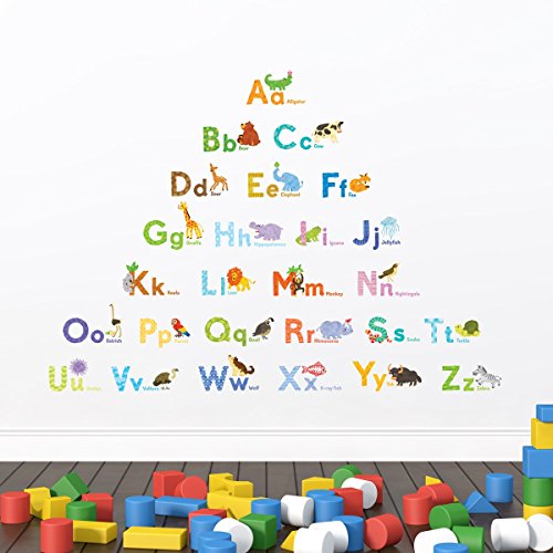 Decowall DAT-1608 Watercolour Animal Alphabet ABC Kids Wall Decals Wall Stickers Peel and Stick Removable Wall Stickers for Kids Nursery Bedroom Living Room