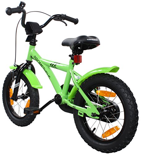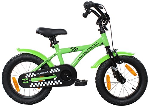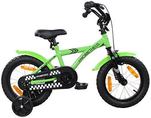 In den aktuellen Trendfarben erfüllt dieses PROMETHEUS® Produkt höchste Qualitätsansprüche und erfüllt sämtliche Normen und Anforderungen der EU (DIN 14765).Im Gegensatz zu anderen Kinderfahrrädern bietet Ihnen unser PROMETHEUS® Produkt: Prallschutz am Lenker, reflektierende Pedale, Alu-Fahrradglocke, Katzenaugen und extragroße Reflektoren am vorderen und hinteren Bereich. Die Stützräder bieten Ihrem Kind Unabhängigkeit beim Fahren, und sobald Ihr Kind ausreichend geübt ist, können die Stabilisatoren einfach entfernt werden.