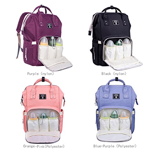(Black and purple) outer layer is nylon, (Orange-pink and blue-purple) outer layer is polyester, All internal materials are polyeste,besides , We use oxford cloth as a waterproof material, The lining of our diaper bag also has a layer of high quality material that makes the diaper bag look more sturdy, The other sellers lining has not materia. So our diaper backpack looks more sturdy.
