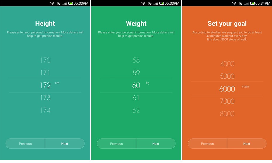 Then, you would be asked to select your age, height, weight, and set your goals for the day.