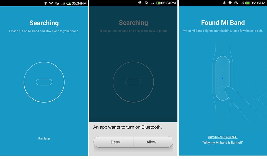 Now, the Mi Band app will ask for permission to turn on the Bluetooth on your smartphone.
