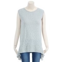 SISLEY , 주름 디테일로 포인트를주어 세련스러운 연출하는 민소매 니트 티셔츠입니다