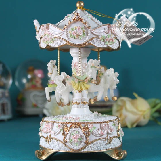Super nice! Romantic gift roses carousel music box! Fine workmanship, Trojans and roses