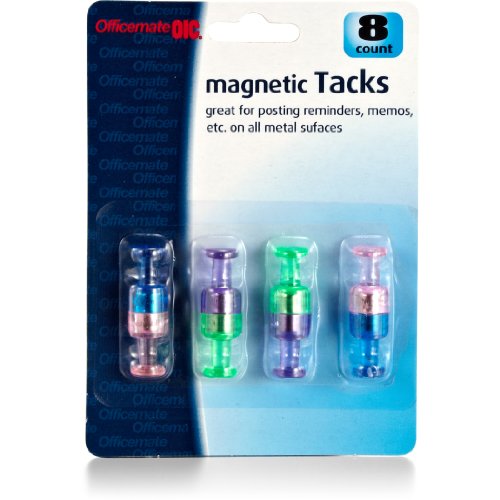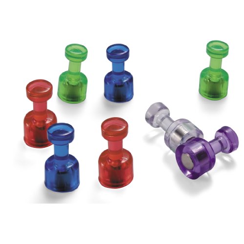The super strong and cute magnets shape like push pins add fun colors to the workplace or home. Push pin design magnets make exact placement easy. Great for use with magnetic whiteboards or use on steel file cabinets or even the refrigerator door. Comes in fashionable translucent colors. Eight in a pack.Feature