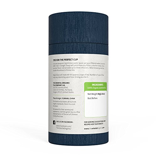 The Oriental Organic-Premium Jasmine Green Tea-(40+ servings)-2.82oz(80g)-Loose Leaf Tea-USDA Approved