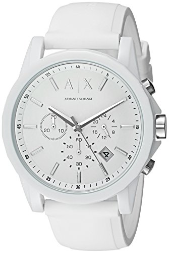 -. Binding : Watch -. Brand : Exchange -. Color : White -. Department : unisex-adult -. EAN : 0723763239271 -. Feature : White watch with silver-tone accents featuring logo at 12 o'clock, P.R.Inted minute track, and three chronograph subdials placed at center dial / 44 mm resin case with mineral dial window / Quartz movement with analog display / Smooth silicone band with buckle closure / Water resistant to 50 m (165 ft): In general, suitable for short periods of recreational swimming, but not diving or snorkeling -. Label : Exchange Watches -. Manufacturer : Exchange Watches -. Model : AX1325 -. MPN : AX1325 -. PackageQuantity : 1 -. PartNumber : AX1325 -. ProductGroup : Watch -. ProductTypeName : WATCH -. Publisher : Exchange Watches -. Studio : Exchange Watches -. Title : Exchange Unisex AX1325 Analog Quartz White Watch -. UPC : 723763239271