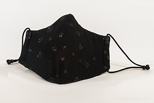 -. Feature : This M11 Black Mesh Black Glitter Dots Cold and Allergy Mask protects you in style! (Available As Matching Scarf Set) / Respiratory protection from dangerous airborne particles - allergens, germs, smoke, pollen, haboobs, dust, pet dander, flu, cold and other pollutants that can cause or irritate bronchitis, respiratory illness, weakened immune systems, COPD and asthma. / Your first line of defense - fashionable, comfortable, ECO friendly, washable, re-usable and made in the U.S.A. / Made of Eco friendly fabrics: Outer: Bamboo Cotton Feather Jersey - 70% Bamboo (Viscose Rayon)/30% Cotton. Inner: 66% Bamboo/28% Cotton/6% Spandex. Size: Teen - Adult / Our masks also provide anti-bacterial and hypo allergenic qualities that others can't. Our M.E.R.V. 11 advanced pharmacuetical grade filter sandwiched between inner and outer layers rated filter adds an additional and most distinctive level of protection from molecule size pollutants that pose the greatest risk! Uses: Outdoors, traveling, wood working, general construction, remodeling, painting, grooming, power washing, sweeping, snow plowing, leaf blowing and edge trimming, lawn mowing, pet grooming, sanding, drywalling, public areas, smokey atmosphere, in the yard, attic, garage and basement.