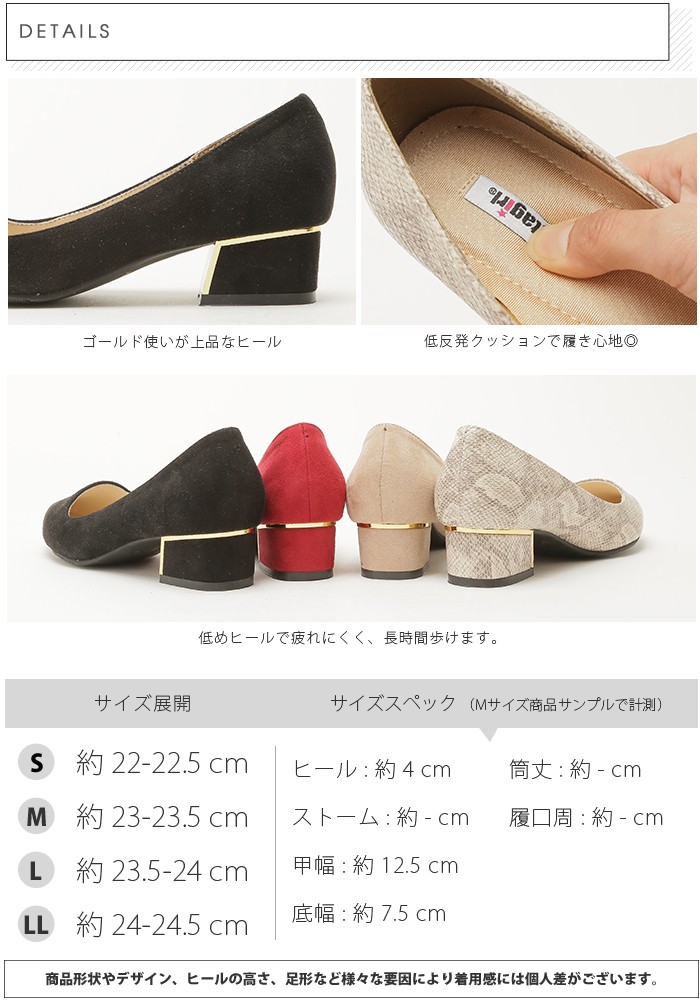 | カラー | 01. ブラックスエード 02. ベージュスエード 03. レッドスエード 04. パイソン |