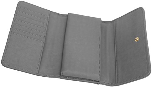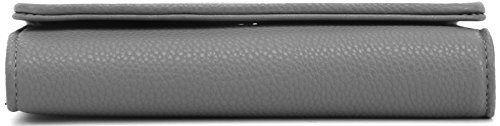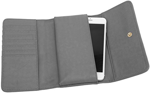 Lily Jane's Clutch Wallet Purse has a removable chain strap (26 inch drop) with a soft vegan leather strap area for where it rests on your shoulder. The clutch has a compartment for even plus sized phones. In addition to the compartment that can fit upto an iPhone Plus or Galaxy Note, there's a cash compartment and 7 card slots. Made of synthetic leather & gold metal tone hardware, the clutch has a button clasp to keep your contents secure.Feature