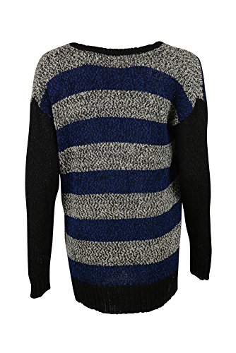 Put on this medium weight knit sweater with various stripes running horizontal along the body of the sweater rich hues of blue black and white, create a flattering look, perfect to pair back with your favorite kensie jeansFeature