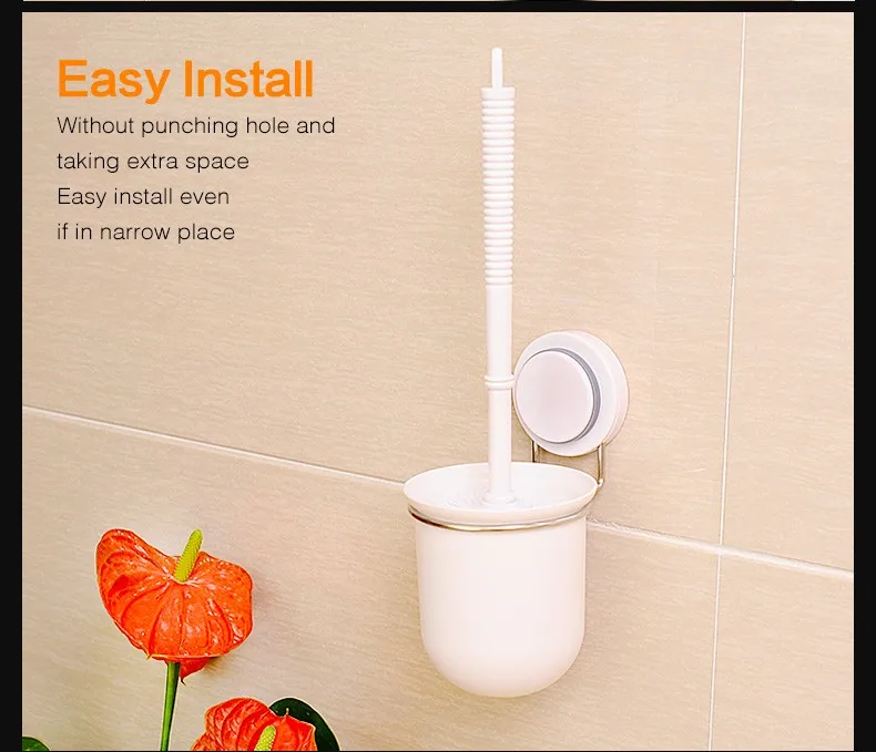 BEEGAGA Wall-Mounted Powerful Suction Toilet Brush Holder Stainless Steel Rack Plastic Bathroom Accessories Cleaning Brush Sets