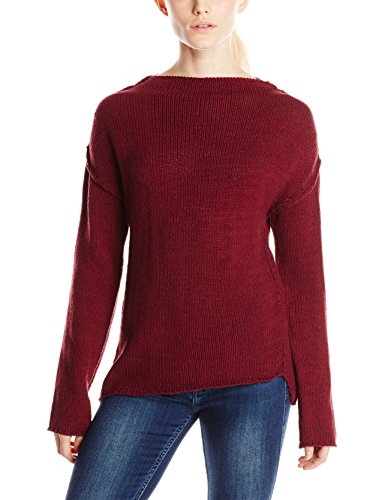 Heavy gauge knit pullover sweater top. A wide boat neck and reversed sewing seams make this a trendy and cozy winter sweater.