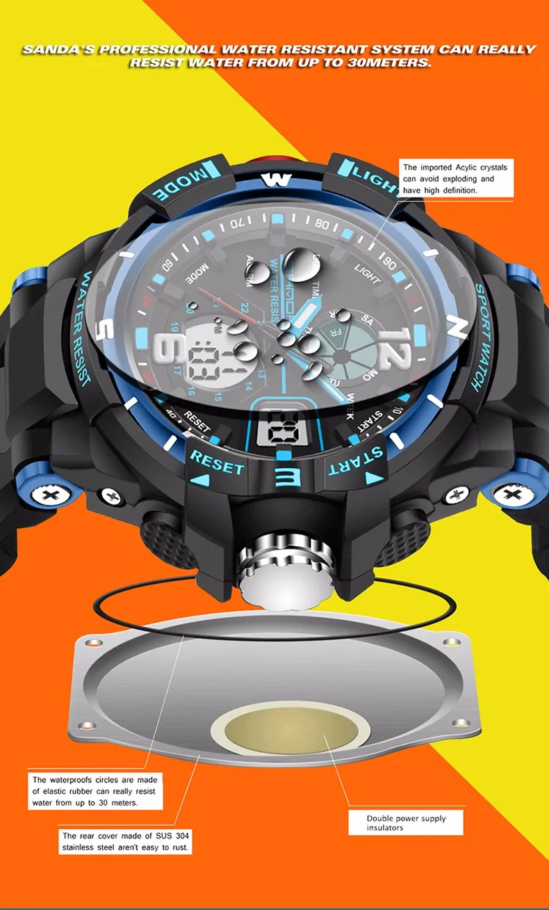 Feature:Water Resistant,LED display,Multiple Time Zone,Stop Watch,Back Light,Complete Calendar,Shock Resistant,Diver,Auto Date,Alarm,Swim
