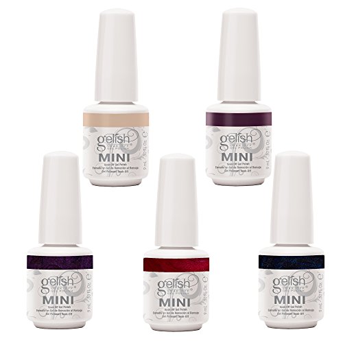 -. Binding : Health and Beauty -. Brand : Gelish -. EAN : 0812803717319 -. Feature : 5 different gel nail polish bottles / Requires use of Gelish LED drying curing lamp / Lasts up to 21 days with perfect shine / Uses Gelish patented technology for easy soak off / Cures in 30 seconds under LED lamp (2 minutes under UV lamp) -. IsAdultProduct : 0 -. Label : Gelish Mini -. Manufacturer : Gelish Mini -. MPN : 5 Color Collection -. NumberOfItems : 5 -. PackageQuantity : 1 -. PartNumber : 5 Color Collection -. ProductGroup : Beauty -. ProductTypeName : BEAUTY -. Publisher : Gelish Mini -. Studio : Gelish Mini -. Title : Gelish Mini 5-Bottle Soak Off Solid and Shimmer Gel Nail Polish Collection, 9 mL -. UPC : 812803717319