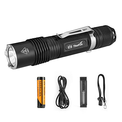 ThorFire 18650 Flashlight with Battery and Charger, 1070 Lumen XML2 Led Ultra Bright EDC Pocket Light(VG15S) with 5 Modes for Camping, Hiking,Cycling