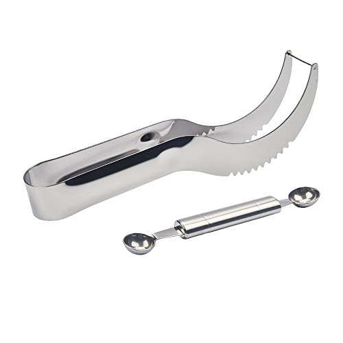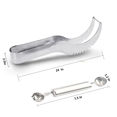 3-IN-1 Watermelon Slicer with Extra Melon Baller, Food Grade Stainless Steel Watermelon Corer Slicer Knife and Server