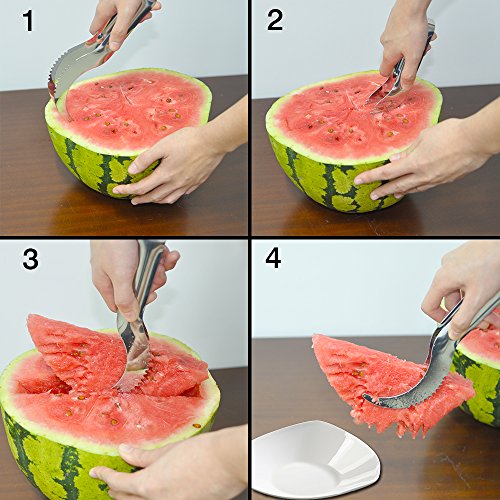 PREMIUM GRADE - Our Watermelon slicer is made from the highest quality 18/10 Stainless Steel with enhanced ergonomically designed handles which curves in sharp edges and is comfortable to hold and use.