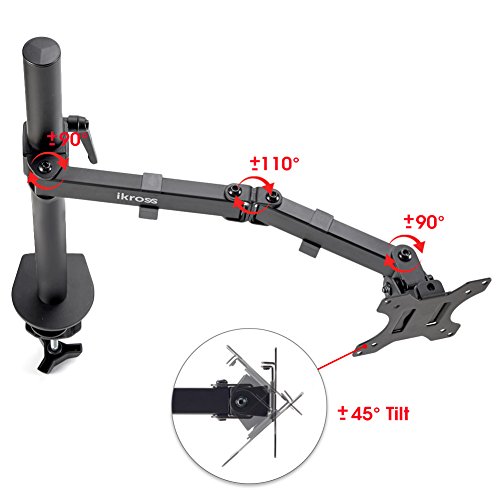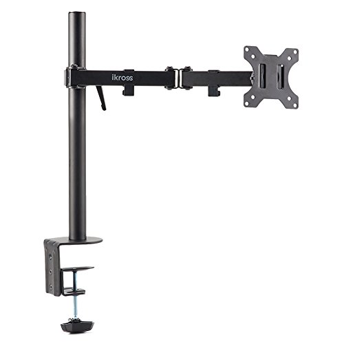 -. Binding : Electronics -. Brand : iKross -. EAN : 0885157840484 -. Feature : The iKross Dual Monitor VESA Desktop Clamp Mount offers a highly versatile monitor mounting. Fits VESA 75 x 75mm, and 100 x 100mm mounting patterns. Arm weight capacity: 17.6lbs. / Better Mounting Solution: Detachable VESA plate makes the assembly easier than ever. Install the mount to your desk with C-clamp or grommet base. Perfect for workstations, standing desks, L Shaped desks, writing desks, or shop desks. / Fully Adjustable: Durable Dual-Joint Arm and screw with handle allow wider rotation angle and height adjustment to suit user's preferred viewing angle and desktop of all sizes. / Neat and Organized: Cable management and screw tool storage to easily keep the wires out of sight while allowing them to move freely when adjusting monitor angles. / Compatible with 13" / 15" / 17" / 19" / 20" / 21" / 23" / 24" / 26" / 27" / 28" / 29" / 30" / 32" LED LCD flat or curved Monitors from Acer, AOC, ASUS, LG, Sony, BenQ, Dell, HP, Samsung, Viewsonic & more. -. Label : iKross -. Manufacturer : iKross -. Model : 885157840484 -. MPN : 885157840484 -. PackageQuantity : 1 -. PartNumber : 885157840484 -. ProductGroup : PC Accessory -. ProductTypeName : COMPUTER_ADD_ON -. Publisher : iKross -. Studio : iKross -. Title : iKross Single Monitor Desk Mount with C Clamp & Grommet Base / Dual-Joint Arm / Detachable VESA Plate for 13 - 32 inch LED/LCD VESA Screen -. UPC : 885157840484
