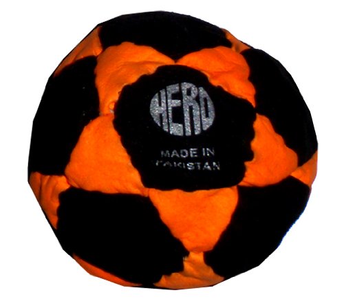 HERO BLACK & NEON ORANGE 32-PANEL HACKY SACK / FOOTBAG - COMES WITH TIPS & GAME INSTRUCTIONS -