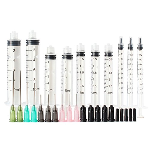 10 Pack - Syringe with Blunt Tip Needles and Caps - 10ml, 5ml, 3ml, 1ml, and 14Gx1.5'' 16Gx0.5'' 18Gx1.0'' 20Gx0.5'' - Great for Oil or Glue Applicator
