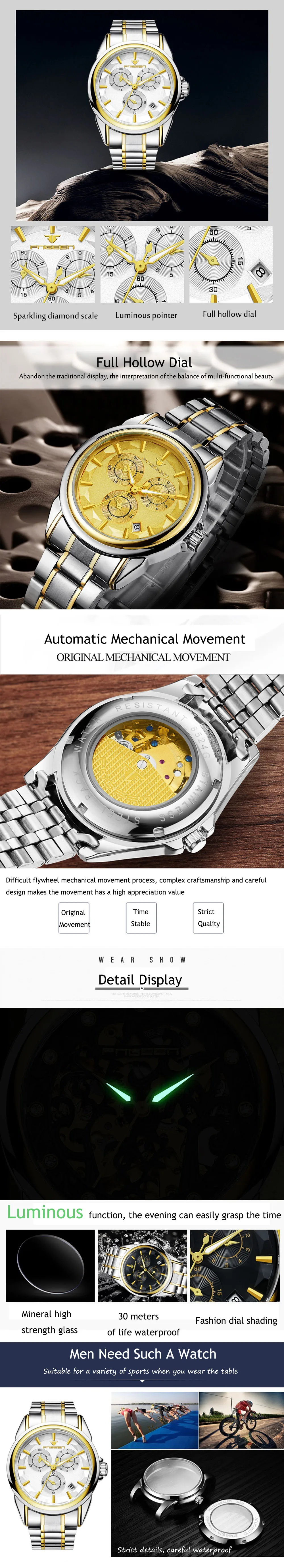 Model Number:Automatic mechanical watch, luxury, business, leisure, waterproof
