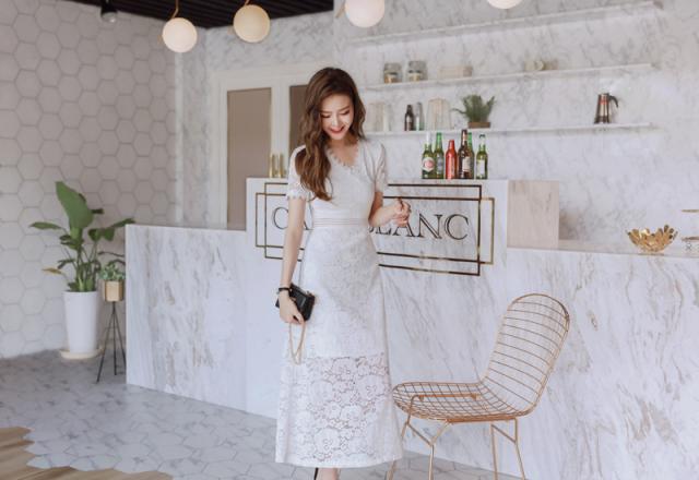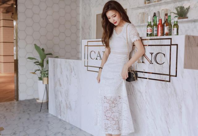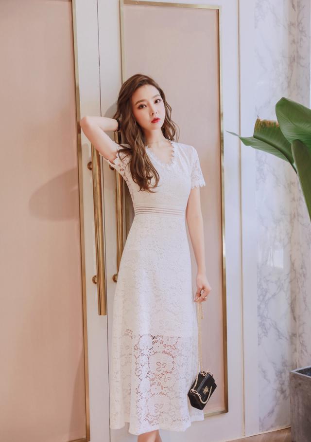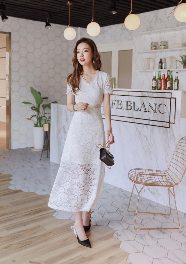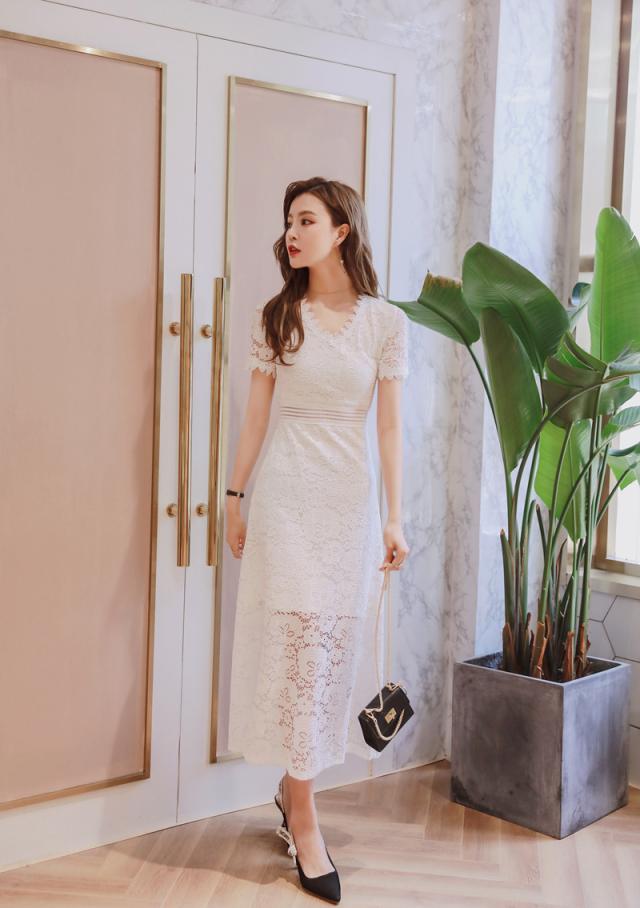 レース ロング コーディネートセット 半袖 ドレスワンピース
