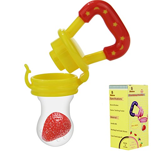 Biubee Baby Food Feeder, Silicone Fresh Fruit Feeder, Nibbler Teether Food Mesh for Infant & Toddlers Feeding and Teething (S, Yellow)