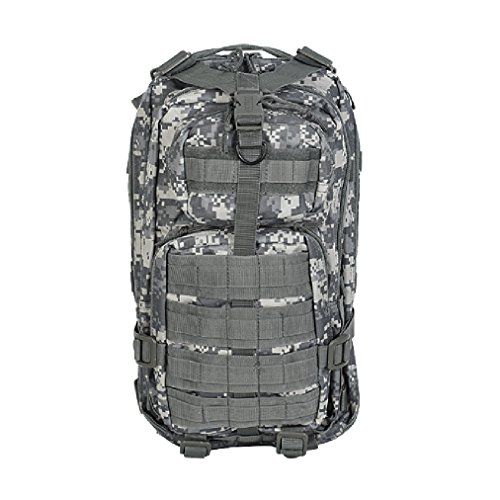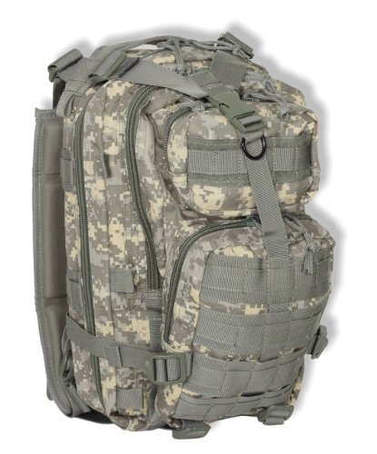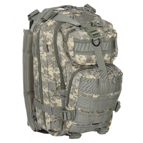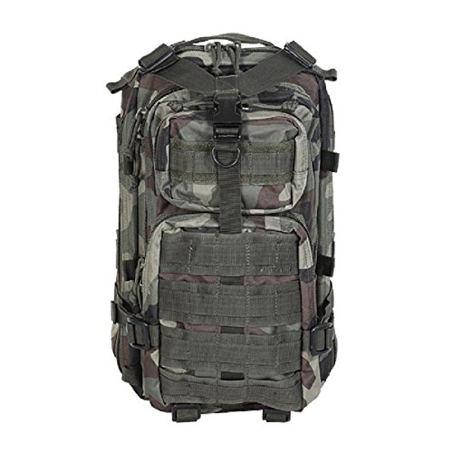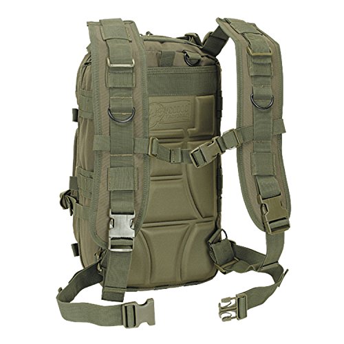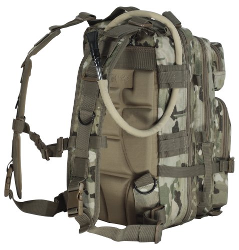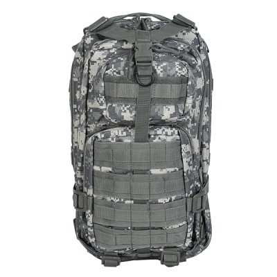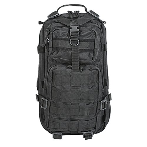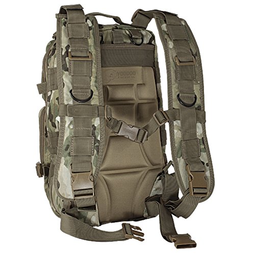 Studio : Voodoo Tactical Publisher : Voodoo Tactical Binding : Misc. Product Description This enhanced Level III MOLLE compatible assault pack (18"h x 10"w x 10"d) is perfect when you don't want to lug around a full three-day assault pack. With less than half the cubic inches of our larger assault pack, you will find it is the perfect size for when you want to travel light, such as a one-day or overnight excursion. Thanks to the many MOLLE compatible attachment points (PALs) you can add additional MOLLE, ALICE or similar pouches if more carrying capacity is needed. The pack has two main compartments and two large exterior pockets for stowing gear you may need to access in a hurry. It is hydration pouch compatible (bladder sold separately), and has vertical and horizontal compression straps to help hold your gear in place. It also offers an adjustable waist belt and a web carry handle on the top.