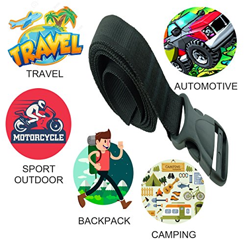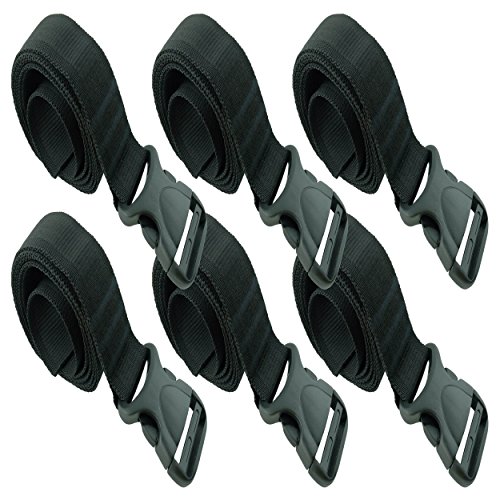 333 World - Strap with Plastic Quick Release Buckle for Lashing Strap, Backpack, Camping, Sleeping Bag, Air Mattress, Luggage Straps, Automotive. (Black 1" x 60", 6 pieces)