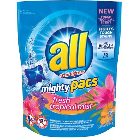 Product DescriptionAll Stainlifters Mightly Pacs Landry Detergent, Fresh Tropical Mist, 1.30 lb0
