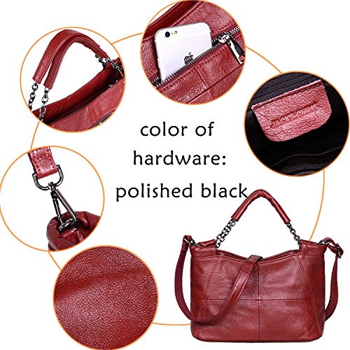 Material: After hair removal ,the cow leather will be cross-cut into upper and lower two layers,the upper one, much more soft and delicate, will be processed into the first layer of leather.The lower one process with chamical dyeing technology coming into being bovine leather. JackChris cute ladies handbag, WB503, choosing top layer leather, owing characteristics of irregular wrinkles and chic texture on surface,soft touch and wear-resisting,tenacity .This is natural leather texture formation also the characteristics of genuine leather which we all have,each of our handbag have been attached an piece of leather as sample,pls feel free to check. Maintenance Tips ? Leather handbag should always be placed in a cool, dry place. ?Pls clean leather by wiping with special leather detergent instead of water soak cleaning , dried naturally without exposing to heat sources or direct sunlight. ? Avoid chemical pollution which would cause discoloration or stains. ? Keep all metal accessories away from moisture and cleaning with dry cloth for maintaining appearance. About The Color Photographed by Nikon Camera, all the items were pictured by ourselves. PLEASE NOTE:That bag color may vary from the pictured sample as its made of original leather, canvas or other materials.