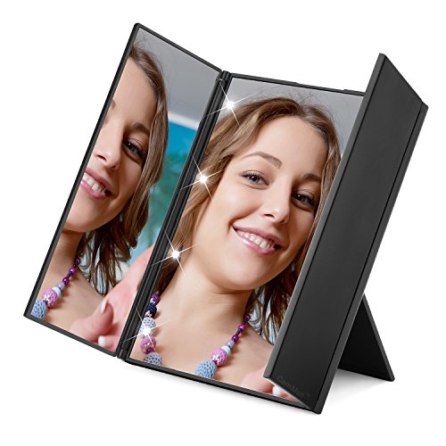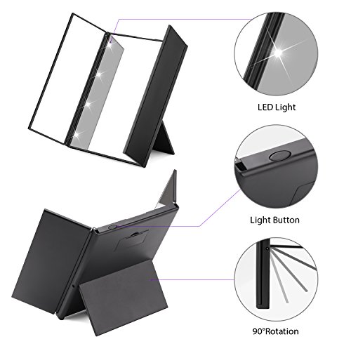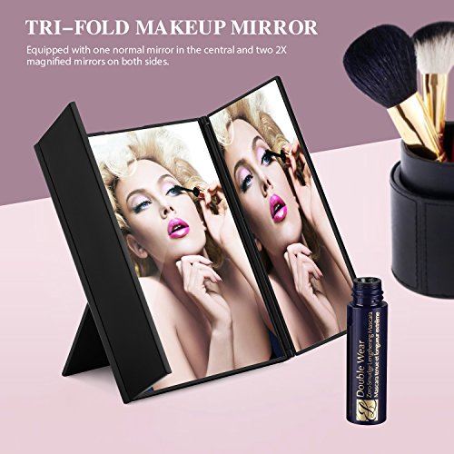 - 3 Different Magnifications: Tri-fold design enable you makeup up to see much more angle clearly your facial features and tiniest details, especially suitable for eye makeup, such as draw eyeliner, eyebrows or mascara.