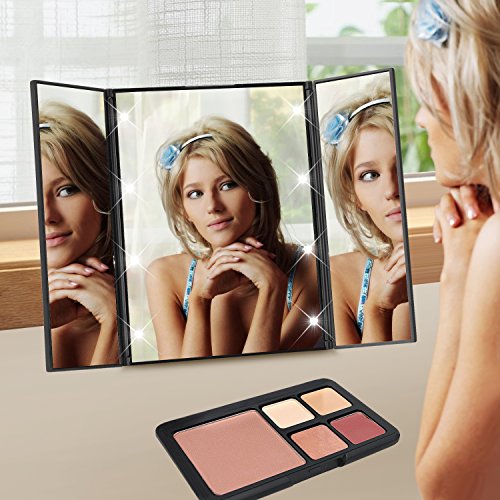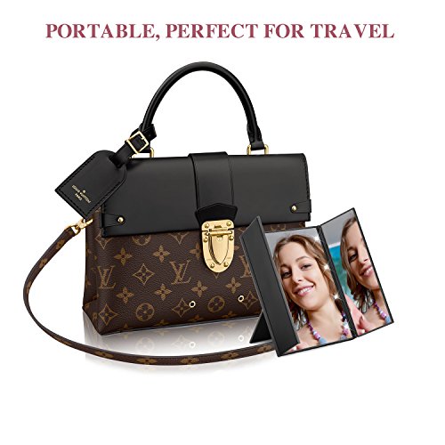 - Perfect for Trave: Compact Mirror with adjustable Stand and folding sides make the led mirror a travel must have accessory for putting on make-up on the go or while traveling. Bring the comfort of a full vanity anywhere you go!