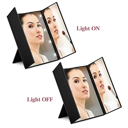 Lighted Vanity Makeup Mirror, Portable Travel Vanity Mirrors with 8 Led Lights, Tri Fold With Adjustable Stand for Women/Men/Girls Cosmetic Makeup (Black)