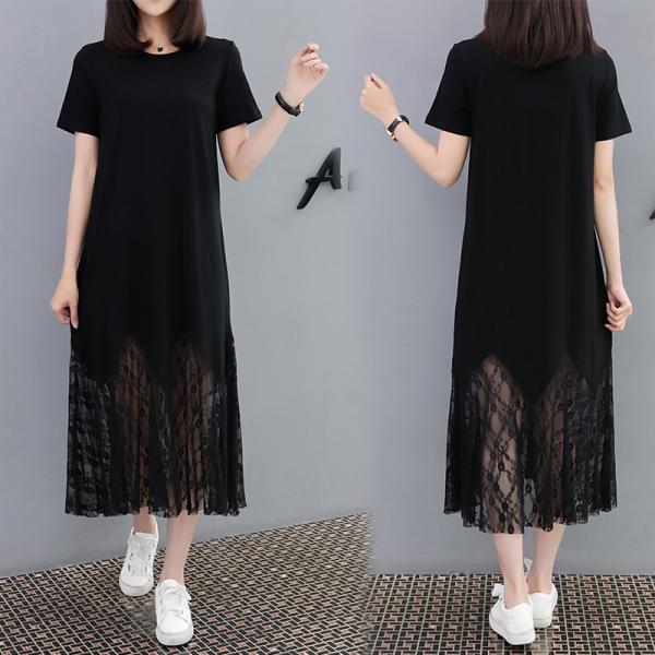 裾レース素材のマキシ丈ワンピース。
