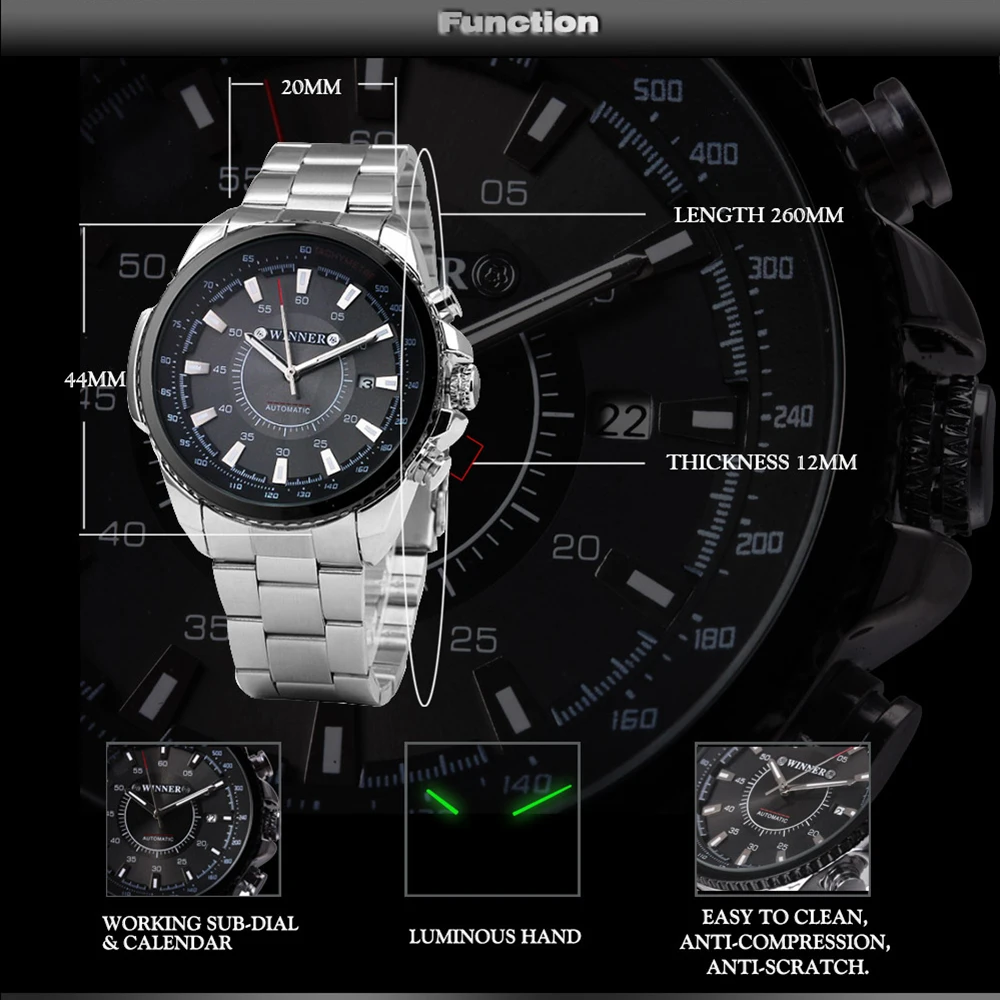 Feature:Auto Date,Shock Resistant,Luminous Hands
