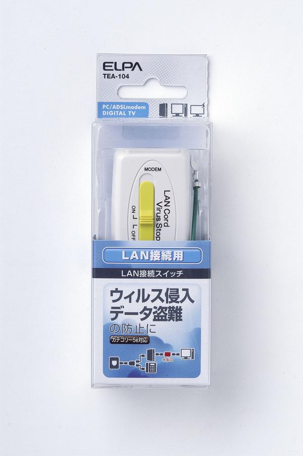 ADSLモデムとPC間のLANコードに取り付けます。スイッチOFFで簡単にインターネットからパソコンを遮断できます。ウィルス対策にお使いください。 ※サプライヤー直送品 ご注文後2~3営業日後の出荷となります【商品名】LAN接続スイッチ TEA-104