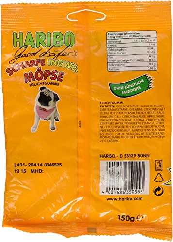 -. Feature : Country of origin: Germany / Haribo / 150g / Spicy Ginger / Haribo Fruchtgummi Moepse (Pugs) Spicy Ginger 150g