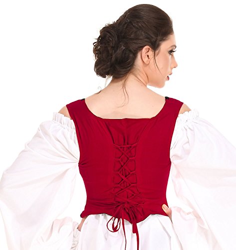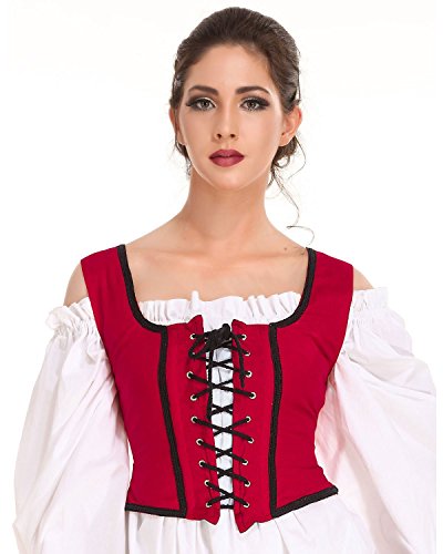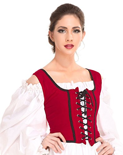 -. Title : Pirate Wench Peasant Renaissance Medieval Costume Corset Bodice [Red]