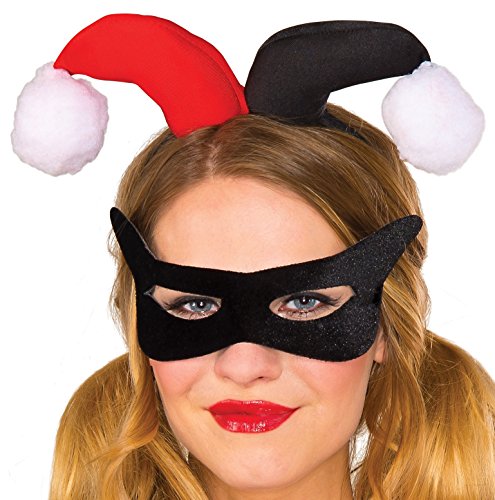 -. Binding : Apparel -. Brand : Rubie's -. Department : womens -. Feature : Officially licensed dc Comics harley quinn accessory / Harley quinn eye mask and headpiece / Note: costume sizes are different from clothing sizes; review the Rubie's size chart when selecting a size and consider buying the next size up if you are at the top of a size range / Part of the dc Comics costume separates line, look for all the pieces you need to create a look you'll love / Rubie's offers dc Comics costumes and accessories in sizes and styles for the entire family, makes group looks fun and easy -. IsAdultProduct : 0 -. Label : Rubies Costumes - Apparel -. Manufacturer : Rubies Costumes - Apparel -. Model : 38039 -. PackageQuantity : 1 -. ProductGroup : Apparel -. ProductTypeName : ADULT_COSTUME -. Publisher : Rubies Costumes - Apparel -. Studio : Rubies Costumes - Apparel -. Title : Rubie's Women's DC Comics Harley Quinn Eye Mask and Headpiece