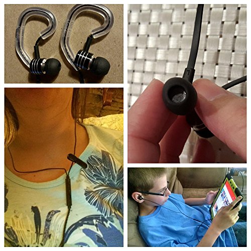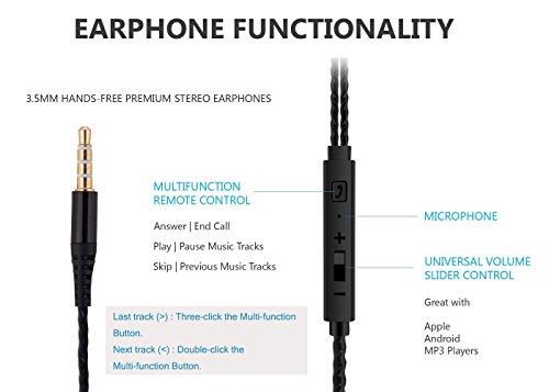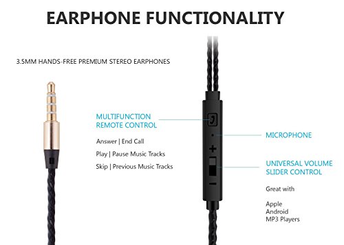 -. Feature : 1. 3.5mm Gold-plated Plug Wired Headphones: Built-in mic lets you talk hands-free on your smart phone device. When your phone rings, simply press the Multi-function Button to answer/hang up. Long press the Multi-function Button to reject. / 2. Crisp and Precise Sound Tuning Earphones: Volume up/down functions not supported on iOS devices, but spported on Android Smartphones. Compatible with iPhone 6s 6s Plus, iPhone SE, Samsung Galaxy S7 S7 edge, LG G5, iPad Pro, iPad Air, iPod, Tablet, MP3 Player. / 3. In-line remote control with music Play/Pause, Hand-Free Calling. Built in clip help with securing it to your shirt or somewhere. Ideal for listening when exercise, travel, or for everyday wear. / 4. With ear holders for Sports & Exercise: Can further secure earbuds around your ears. It is Ultra-lightweight, Comfortable. / 5. These provide very crisp sound with a degree of noise cancellation. Have 12-month worry-free warranty. Please send an email if having any issue.